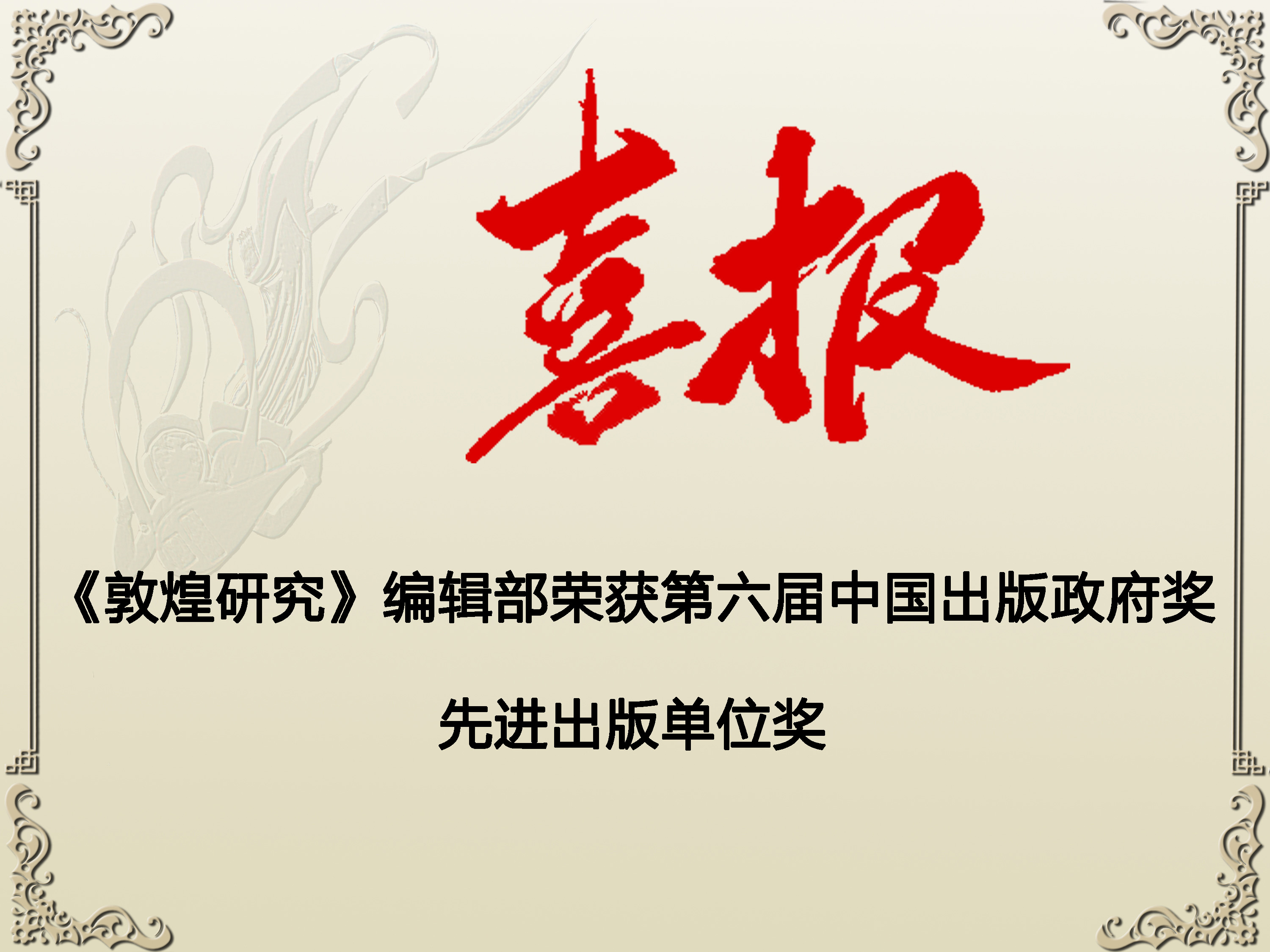 • 喜报:《敦煌研究》编辑部荣获第六届中国出版政府奖先进出版单位奖 2026-03-27